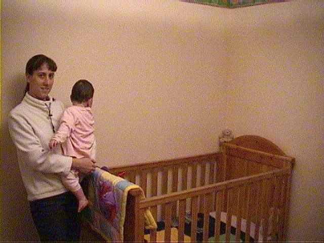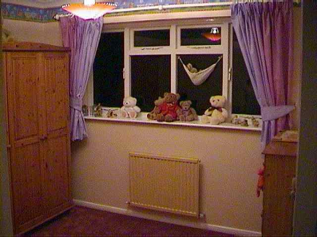 I know that this below one looks very - ermmm - plain, but it isn't really! The wardrobe is to the right, and the door is just to the left of Sam and Rebecca (admiring her new cot and NOT crying - honest!!!)