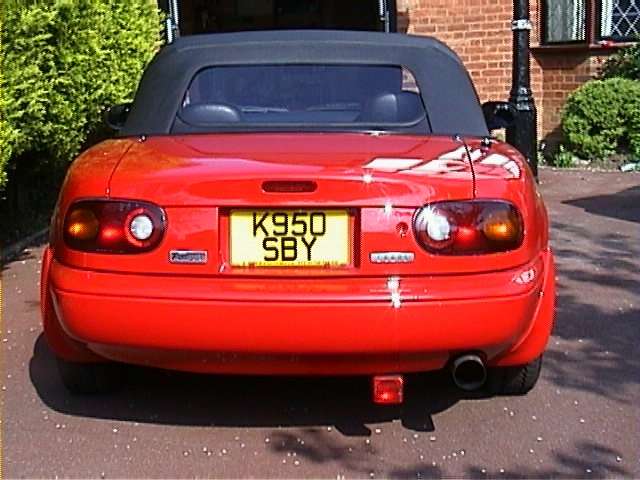 I got Keith to add a Toad Cat 1 alarm.immobiliser as well to the standard spec, which in itself is the top of the range (apart from it having ABS for some reason - I don't think they fit it to the Jap Roadster due to the weight). So thats electric windows, stainless kickplates and sills, electric aerial, Sony CD player (ok so I added that), 15" alloys, limited slip diff, windblocker and a cool badge on the front that I've never seen before!