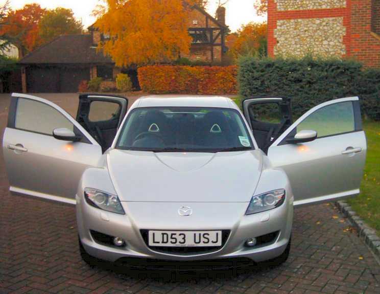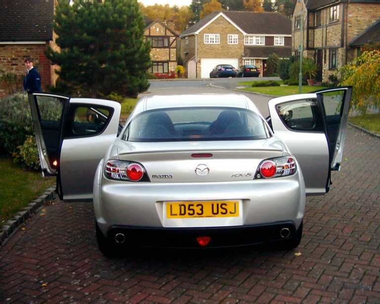 If the ST24 was all about a family car not being slow, well this redefines everything! What a car. When Sam and I found out she was pregnant with Ben, at the start of February 2003, it just so happened to coincide with the announcement of the RX-8. As you can probably tell, I am a Mazda fan by now. The reliability on its own is second to none. In fact, thats true, based on the JD Power surveys on the last 3 years Mazda have been top of the pops. So on February 18th, I put down my £1000 deposit with T W Whites in Weybridge (Brian Gubby had long since died as a dealership unfortunately, and weirdly so had Whichford in Maidenhead), which resulted in me having to go to posh old Weybridge. Rotary is something that I always thought went into lawn mowers or involved a load of older blokes sitting round a table doing good things for the world. Like my dad does. (heh). But, no, a turbine sounding engine is the heart of this beast which officially is only a 1.3 litre, but as two lots of fuel goes through in one rotation (equivalent to one up and down movement of a traditional piston if such a comparison can be made at all), and thus two ignitions of said fuel then its classed as a 2.6litre. Who cares? 0-60 in 6.4 seconds makes this the fastest car I've owned thus far. But as I'm now 31, I can afford the (just under £700) insurance. So, I gave in and the Red Eunos went. However, I was allowed this 'practical' car in its place. Hoorah, no soft top (boo!) but speed, yes (hoorah!). Check those dates, deposit Feb, car Nov. Hmmm. Ben took less time to gestate than the bloomin' car. Mazda put it down to the success in Japan and the US. Good old Europe, we even got it after the Aussies in the end. Typical. Still, I was one of the first and (to my knowledge) the first silver private owner in the Country. Cool!!! After leaving the dealers, I drove through villages around Weybridge (I had to go and get the mats from a different branch of T W Whites). I felt so proud and happy, almost a tear in my eye that I had waited this long for this lump of metal and plastic. Ok, not as happy as I was when Ben arrived, but still, I don't think this much since at least the Bronze MX-5 and maybe even more than! Bonfire night came, and I took Rebecca out for a drive and we watched loads of fireworks. She must have enjoyed the ride, she fell asleep around 9.15pm !!! Ok, day one over, 70 miles on the clock now. Now all I need is that pesky personalised plate that I bought from someone from the owners club. Rich606. Did I mention that I am a committe member of the rx-8 owners club? Strangely, the handle is renegade_si on the forum there. Give me a PM. I'm also often found on the Rx8 European forum, same handle.
